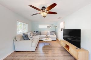 Boasting a private entrance, this spacious holiday home also features 3 bedrooms, a seating area and 2 bathrooms with a walk-in shower and a bath. The fully equipped kitchen has a stovetop, a refrigerator, a dishwasher and kitchenware. The air-conditioned holiday home features a TV with streaming services, a washing machine, a tea and coffee maker, a dining area as well as garden views. The unit has 3 beds.
