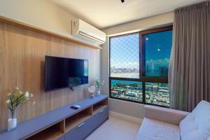 Klimatizovaný prázdninový dům v Parque Shopping #2206 - Apartamento em Boa Viagem Housi por Carpediem má 1 ložnici, 1 koupelnu s toaletními potřebami zdarma a fénem a posezení. Tento prázdninový dům s výhledem na moře má TV, kuchyň s dobrým vybavením včetně lednice, mikrovlnné trouby a varné desky a koupelnu.