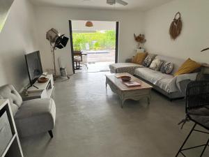 This villa provides a private pool. Featuring a private entrance, this air-conditioned villa is comprised of 1 living room, 3 separate bedrooms and 2 bathrooms with a shower and a hairdryer. Guests will find a stovetop, a refrigerator, a dishwasher and kitchenware in the kitchen. The villa also has a barbecue. Boasting a terrace with garden views, this villa also offers a washing machine and a flat-screen TV with streaming services. The unit offers 6 beds.