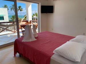 Gelegen in Maragogi, nur 80 m von Strand Praia Peroba entfernt, bietet die Unterkunft 99 Passos Do Mar KITNET 1 andar VISTA MAR direkt am Strand Übernachtungsmöglichkeiten mit einem Außenpool, einem Garten, einer Terrasse und kostenlosem WLAN. Diese Unterkunft mit Gartenblick bietet einen Balkon.