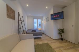 Zimmer: 1Featuring a private entrance, this air-conditioned apartment comprises 1 living room, 1 separate bedroom and 1 bathroom with a walk-in shower and a hairdryer. Meals can be prepared in the well-fitted kitchen, which comes with a stovetop, a refrigerator, kitchenware and a microwave. The apartment features parquet floors, a seating area with a flat-screen TV with streaming services, a washing machine, a tea and coffee maker, as well as a dining area. The unit offers 1 bed.