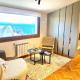 Questo appartamento con vista sulla città presenta pavimenti in parquet, 1 camera da letto e 1 bagno con bidet, doccia e asciugacapelli. La cucina comprende frigorifero, microonde e piano cottura, più macchina da caffè e bollitore elettrico.