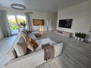 This holiday home offers a fireplace. Featuring a private entrance, this holiday home comprises 2 living rooms, 2 separate bedrooms and 2 bathrooms with a shower and a hairdryer. Guests will find a refrigerator, a dishwasher, kitchenware and an electric kettle in the kitchen. The holiday home also provides guests with a barbecue. Boasting a terrace with garden views, this holiday home also provides a washing machine and a flat-screen TV. The unit offers 4 beds.