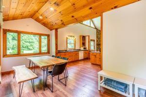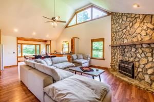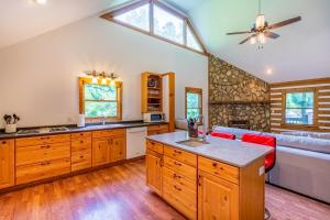 This holiday home provides a fireplace. Featuring a private entrance, this spacious holiday home also comprises 2 separate bedrooms, 2 bathrooms, a living room and a seating area. Meals can be prepared in the well-fitted kitchen, which comes with a stovetop, a refrigerator, a dishwasher and kitchenware. This air-conditioned holiday home is comprised of a dining area, a TV with streaming services a washing machine and outdoor furniture. The unit offers 5 beds.