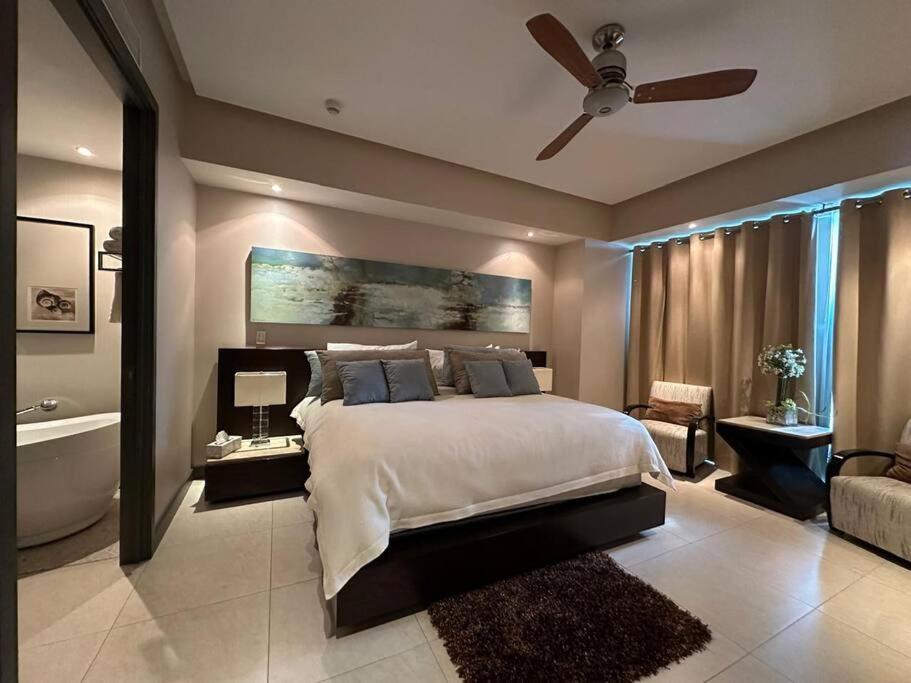 This apartment's standout features are the private pool, hot tub and spa bath. The fully equipped kitchen has a refrigerator, kitchenware and a microwave. The air-conditioned apartment offers a flat-screen TV with cable channels, a washing machine, a tea and coffee maker, a wardrobe as well as sea views. The unit is furnished with 4 beds.