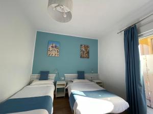 The double room features air conditioning, a wardrobe, a balcony with city views as well as a private bathroom boasting a walk-in shower. The unit has 2 beds.