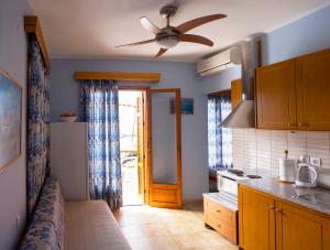 Opening to 2 balconies, this spacious studio enjoys views over the Aegean Sea. It has a kitchenette with dining table, fridge and small electric oven. A TV, 2 air conditioning units and free Wi-Fi are available.