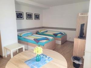 В Pension Domino в номерах имеется телевизор с плоским экраном, письменный стол и собственная ванная комната, а также предоставляются постельное белье и полотенца. Ванная комната в Pension Domino оборудована душем и туалетными принадлежностями. Во всех номерах Pension Domino установлен шкаф.