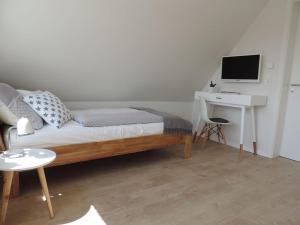 Apartament Penthaus an der Harle obejmuje sypialnię, łazienkę i w pełni wyposażoną kuchnię.