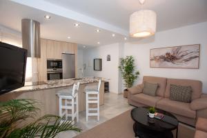 Dwupokojowy apartament posiada łazienkę, kuchnię, jadalnię oraz komplet pościeli i ręczników. Obiekt Penthouse with terrace in Marbella- Costa del Sol oferuje telewizor i taras z widokiem na miasto.
