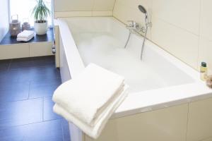 Diese Ferienwohnung besteht aus 1 Schlafzimmer, einem Wohnzimmer, einer voll ausgestatteten Küche mit einem Kühlschrank und einer Kaffeemaschine sowie 1 Badezimmer mit einer Dusche und einer Badewanne. In dieser Ferienwohnung werden Handtücher und Bettwäsche zur Verfügung gestellt.