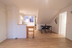 Apartmán Penthouse Wohnung mit Terrasse zahrnuje 1 ložnici, 1 koupelnu, ložní prádlo, ručníky, TV s plochou obrazovkou, jídelní kout a plně vybavenou kuchyň. Z balkonu ubytování Penthouse Wohnung mit Terrasse se nabízí výhled na město. Koupelna v ubytování disponuje sprchou, pračkou, fénem a toaletními potřebami zdarma.