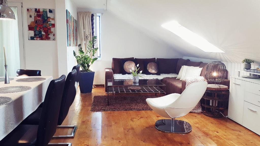 Featuring a private entrance, this spacious apartment also consists of 2 bedrooms, a seating area and 1 bathroom with a shower and a hairdryer. Guests will find a stovetop, a refrigerator, a dishwasher and kitchenware in the well-equipped kitchen. The apartment also offers a barbecue. The air-conditioned apartment provides a flat-screen TV with cable channels, soundproof walls, a tea and coffee maker, a dining area as well as garden views. The unit offers 2 beds.