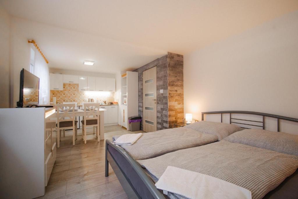 Pokoje: 4The pool with a view is a top feature of this apartment. Boasting a private entrance, this apartment also comes with 1 bedroom, a seating area and 1 bathroom with a shower and slippers. The fully equipped kitchenette has a stovetop, a refrigerator, kitchenware and a microwave. The apartment features a flat-screen TV with cable channels, a tea and coffee maker, a wardrobe, a dressing room as well as garden views. V této ubytovací jednotce se nachází 3 postele.