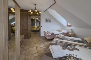 Dvoulůžkový pokoj s manželskou postelí a vlastní koupelnou s vanou, fénem a toaletními potřebami zdarma. Dvoulůžkový pokoj s manželskou postelí, příslušenstvím na přípravu čaje a kávy, dlážděnou podlahou, vytápěním a TV. V ubytovací jednotce najdete 2 postele.