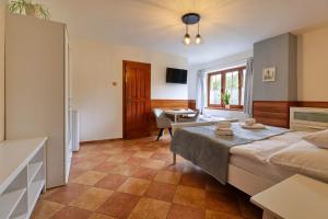 Obiekt Penzion U Horských oferuje telewizor oraz łazienkę z prysznicem, suszarką i kosmetykami. W niektórych opcjach zakwaterowania znajduje się także kuchnia z zmywarką, piekarnikiem i mikrofalówką.