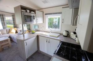 The fireplace is a top feature of this mobile home. Boasting a private entrance, this mobile home comes with 1 living room, 2 separate bedrooms and 1 bathroom with a shower and a hairdryer. In the well-fitted kitchen, guests will find a stovetop, a refrigerator, kitchenware and an oven. This mobile home comprises a dining area, a flat-screen TV with streaming services a seating area and a terrace. The unit has 4 beds.