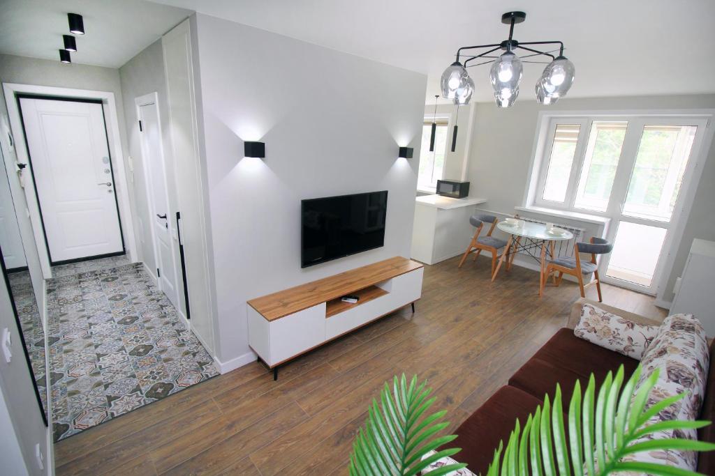 Featuring a private entrance, this air-conditioned apartment consists of 1 living room, 1 separate bedroom and 1 bathroom with a bath and a shower. In the fully equipped kitchen, guests will find a stovetop, a refrigerator, a dishwasher and kitchenware. The spacious apartment provides a washing machine, soundproof walls, a seating area, a flat-screen TV with cable channels, as well as city views. The unit offers 2 beds.