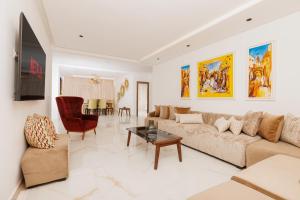 This spacious apartment is comprised of 1 living room, 3 separate bedrooms and 1 bathroom with a shower and free toiletries. In the well-equipped kitchen, guests will find a stovetop, a refrigerator, a dishwasher and an oven. Featuring a balcony with city views, this apartment also offers a tea and coffee maker and a flat-screen TV with satellite channels. V této ubytovací jednotce je k dispozici 3 postele.