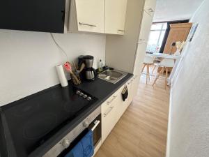 L'appartamento di Perle am Yachthafen - Chic Studio Aparment dispone di balcone, 1 camera da letto, soggiorno e cucina con utensili.