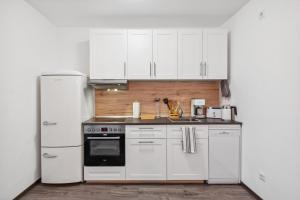 Guests can make meals in the kitchen that is equipped with a stovetop, a refrigerator, a dishwasher and kitchenware. The apartment provides a flat-screen TV with streaming services, a washing machine, a tea and coffee maker, a seating area as well as city views. The unit provides 2 beds.