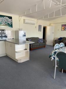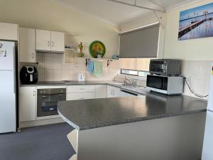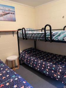 This 3-bedroom, beachfront house has stunning water views. It also includes a self-contained kitchen and an expansive living area. There is a single bathroom and 2 toilets. Reverse-cycle air-conditioning, a kitchen, TV and a DVD player are provided. The verandah has a BBQ. The master bedroom has a queen size bed and water views. The 2nd bedroom has a single bed and single bunk, while the 3rd bedroom has a bunk bed which has double bed on the bottom and single on the top. Pillows and quilts are supplied. Please note that groceries, toiletries, bed linen, sheets, towels and tea towels are not included in the price. Guests must bring their own. Maximum occupancy is 8. Please note that the 8th and 9th guest will each be accommodated on a single-sized mattress.