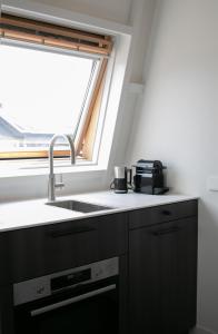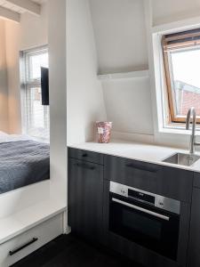 El apartamento Petit designstudio in het centrum van Zandvoort tiene aire acondicionado, 1 dormitorio, TV de pantalla plana y cocina.