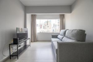 The 2-bedroom apartment is equipped with a living room with a TV, a fully equipped kitchen with an oven and a microwave, and 1 bathroom with a hair dryer. Towels and bed linen are provided at PFR32 - 2 DR, Climatizado, Garagem, Centro, Wi-Fi.