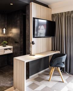 Spacious room with a balcony, bathroom and a flat-screen TV with satellite channels.