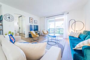 Klimatizovaný apartmán Picasso & Terrasse - 2 Chambres zahrnuje 2 ložnice, plně vybavenou kuchyň s lednicí a myčkou a 2 koupelny. Koupelna je vybavená vanou.