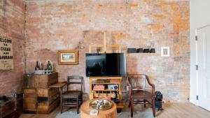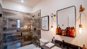 Das klimatisierte Pickle Factory - Cigars and Bourbon Rustic One Bedroom umfasst ein separates Schlafzimmer, eine voll ausgestattete Küche mit Kühlschrank und Mikrowelle sowie ein Badezimmer. In dieser Ferienwohnung werden Handtücher und Bettwäsche angeboten.