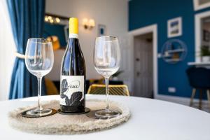 This apartment features 1 living room, 2 separate bedrooms and 1 bathroom with a bath or a shower and free toiletries. In the well-equipped kitchen, guests will find a stovetop, kitchenware, an oven and a microwave. The apartment features a washing machine, a coffee machine, a seating area, a flat-screen TV, as well as sea views. The unit has 3 beds.