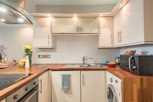 This spacious unit at Pier View - beautiful sea view apartment in Deal includes 1 bedroom, a TV, a bath, a washing machine, and a fully equipped kitchen with an oven and dishwasher. Towels and bed linen are provided at Pier View - beautiful sea view apartment in Deal.