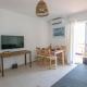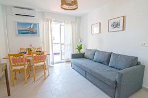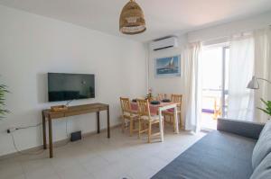 The apartment with a terrace and garden views features 1 bedroom, a living room, a flat-screen TV, an equipped kitchen with an oven and a microwave, and 1 bathroom with a bath. Towels and bed linen are featured at Pinar de la Almadraba, Apartamentos Living Sur.