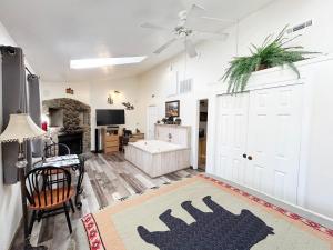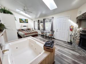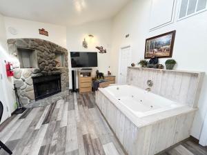 This family room features a hot tub and a fireplace. The fully equipped kitchenette has a refrigerator, kitchenware, a microwave and a tea and coffee maker. The spacious family room features air conditioning, a private entrance, a terrace with garden views as well as a private bathroom boasting a bath. The unit has 2 beds.