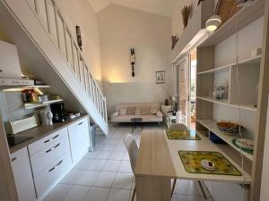 Apartmán Piscine, plage à pied, 2 chambres tvoří 1 ložnice, obývací pokoj, plně vybavená kuchyň s lednicí a troubou a 1 koupelna. Koupelna je vybavená vanou.