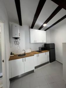 El apartamento Piso 1 - Apartamento Mercado Central dispone de aire acondicionado, 1 dormitorio, sala de estar, cocina equipada con nevera y cafetera, y 1 baño con ducha y secador de pelo. El apartamento Piso 1 - Apartamento Mercado Central dispone de toallas y ropa de cama.