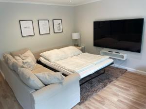 This spacious apartment includes 1 living room, 2 separate bedrooms and 1 bathroom with a walk-in shower and a bidet. Guests can make meals in the kitchen that is fitted with a stovetop, a refrigerator, a dishwasher and kitchenware. The apartment offers a flat-screen TV, a washing machine, soundproof walls, a tea and coffee maker as well as garden views. The unit has 3 beds.