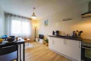 Apartmán Plaine - vue montagne et garage à 700m du lac nabízí 1 ložnici, 1 koupelnu, plně vybavenou kuchyň s jídelním koutem a lednicí a obývací část s TV s plochou obrazovkou. V koupelně ubytování Plaine - vue montagne et garage à 700m du lac nechybí sprcha ani fén.