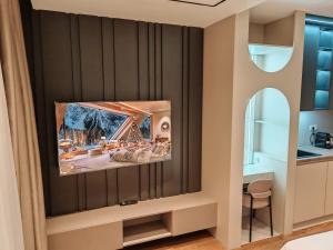 The air-conditioned apartment features 1 bedroom and 1 bathroom with a shower and a hairdryer. In the fully equipped kitchen, guests will find a stovetop, a refrigerator, a dishwasher and kitchenware. Featuring a terrace with city views, this apartment also provides soundproof walls and a flat-screen TV with cable channels. The unit offers 2 beds.