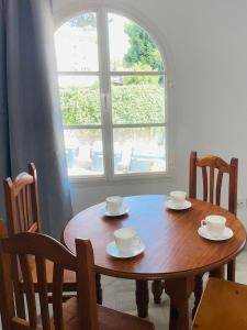 This 1-bedroom apartment features simple décor. It has a modern kitchen with an oven, fridge and microwave.