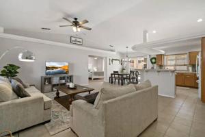 This villa's special features are the private pool and the hot tub. Featuring a private entrance, this spacious villa also comprises 3 bedrooms, a seating area and 2 bathrooms with a bath and a shower. Guests will find a stovetop, a refrigerator, a dishwasher and an oven in the fully equipped kitchen. The villa also provides guests with a barbecue. The air-conditioned villa provides a flat-screen TV with streaming services, a washing machine, a tea and coffee maker, a dining area as well as lake views. The unit offers 7 beds.