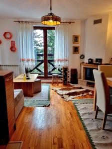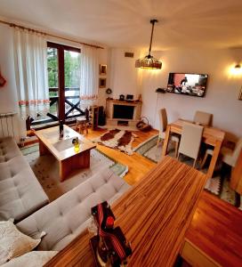 The fireplace is a top feature of this apartment. Guests can make meals in the kitchen that features a stovetop, a refrigerator, kitchenware and an oven. This apartment has a private entrance, flat-screen TV, mountain views, as well as wine/champagne for guests. V této ubytovací jednotce se nachází 2 postele.
