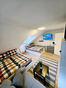 This spacious apartment includes a kitchen, a seating area, 2 separate bedrooms and 1 bathroom with a shower and a hairdryer. The fully equipped kitchen has a stovetop, a refrigerator, a dishwasher and kitchenware. Boasting a balcony with city views, this apartment also offers a washing machine and a flat-screen TV. The unit has 4 beds.