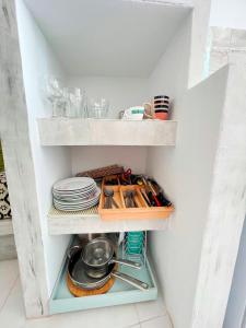 Questa villa con aria condizionata comprende 2 camere da letto, un soggiorno, una cucina con utensili, frigorifero e macchina da caffè, e 1 bagno con doccia e set di cortesia. La dotazione di Poli Cave House Santorini comprende lenzuola e asciugamani.