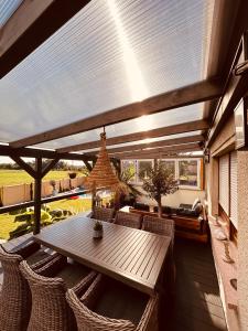 Guests will have a special experience as this holiday home features a private pool, a sauna and a fireplace. This spacious holiday home is comprised of 1 living room, 3 separate bedrooms and 2 bathrooms with a bath and a shower. Guests will find a stovetop, a refrigerator, a dishwasher and kitchenware in the well-equipped kitchen. The holiday home also has a barbecue. The holiday home offers a flat-screen TV with satellite channels, a washing machine, a private entrance, soundproof walls as well as garden views. The unit offers 3 beds.