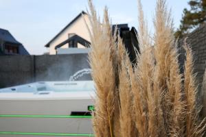 La casa o chalet Poolaris - Modernes Ferienhaus mit Whirlpool cuenta con bañera de hidromasaje.