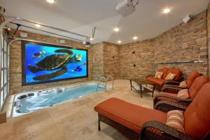 The private pool and fireplace are the special features of this holiday home. Featuring a private entrance, this air-conditioned holiday home is comprised of 1 living room, 2 separate bedrooms and 2 bathrooms with a bath and a shower. Guests will find a stovetop, a refrigerator, a dishwasher and kitchenware in the fully equipped kitchen. The holiday home also has a barbecue. The spacious holiday home offers a TV with cable channels, a washing machine, a tea and coffee maker, a dining area as well as garden views. The unit offers 4 beds.