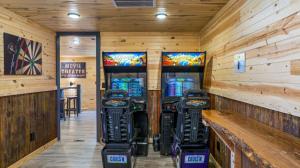 Esta casa o chalet con aire acondicionado consta de 5 dormitorios, una sala de estar, una cocina totalmente equipada con nevera y hervidor, y 4 baños con bañera de hidromasaje y artículos de aseo gratuitos. La casa o chalet Poolside at Autumn Woods - Pool, Theater, Fireplace, Firepit, Arcade proporciona toallas y ropa de cama.
