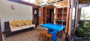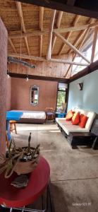 Suite cabin, loft space, consists of 1 living room, 1 bathroom with a walk-in shower and free toiletries. Meals can be prepared in the kitchen, which is equipped with a stove, refrigerator, kitchen utensils, and coffee maker. This cabin has a private terrace with garden views, an outdoor table, and a flat-screen TV with cable channels. The accommodation has 1 queen bed and 1 additional single bed. It has a jacuzzi service with hydromassage and body massages with additional payment to the accommodation reservation.